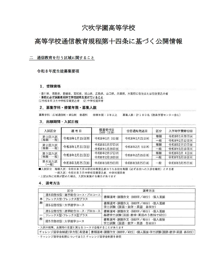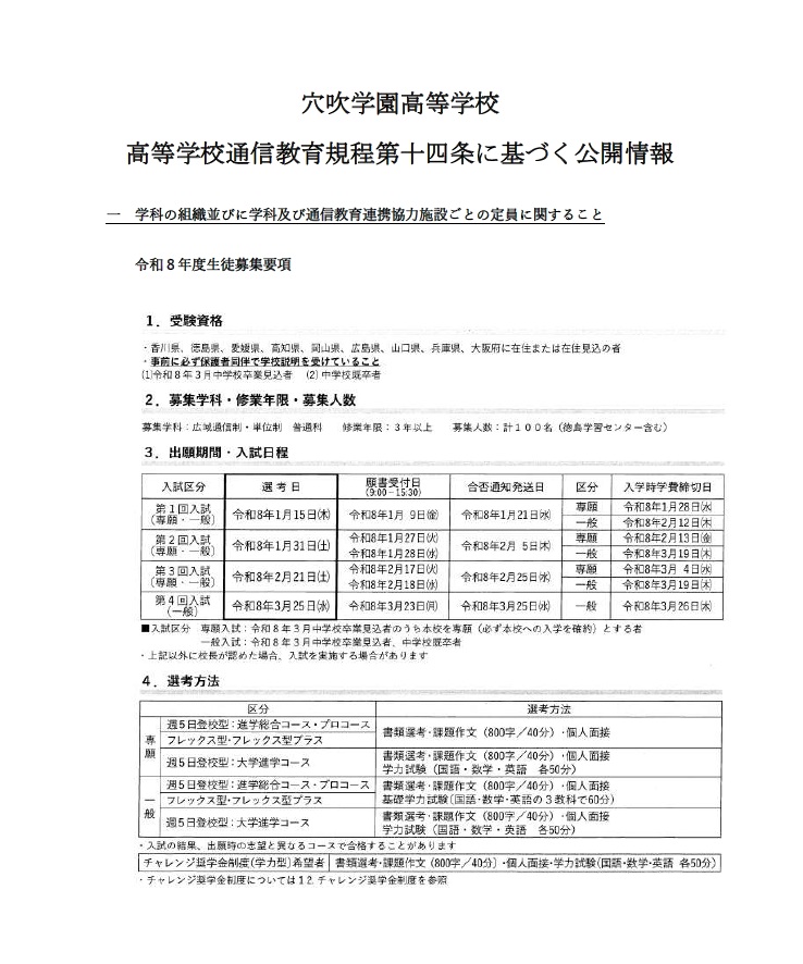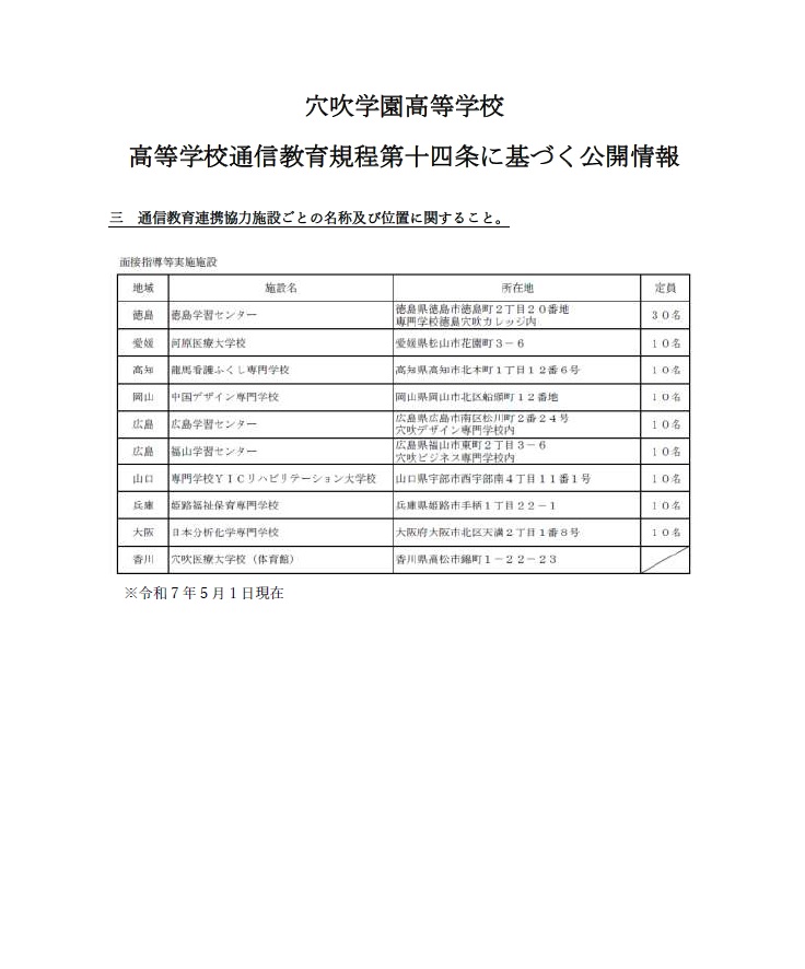 高等学校通信教育規程第十四条に基づく公開情報