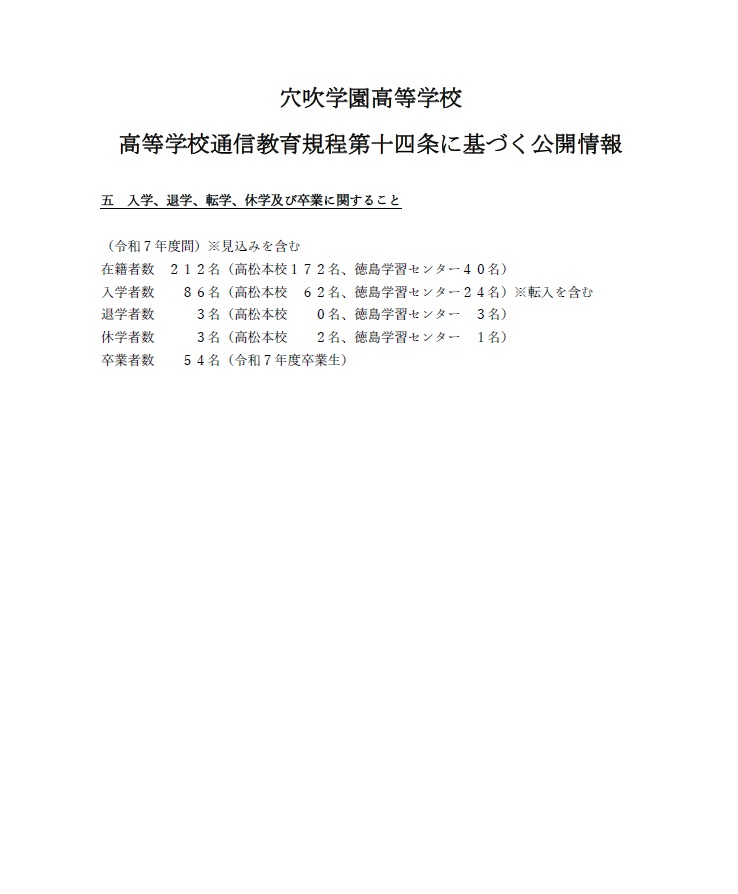 五 入学、退学、転学、休学及び卒業に関すること