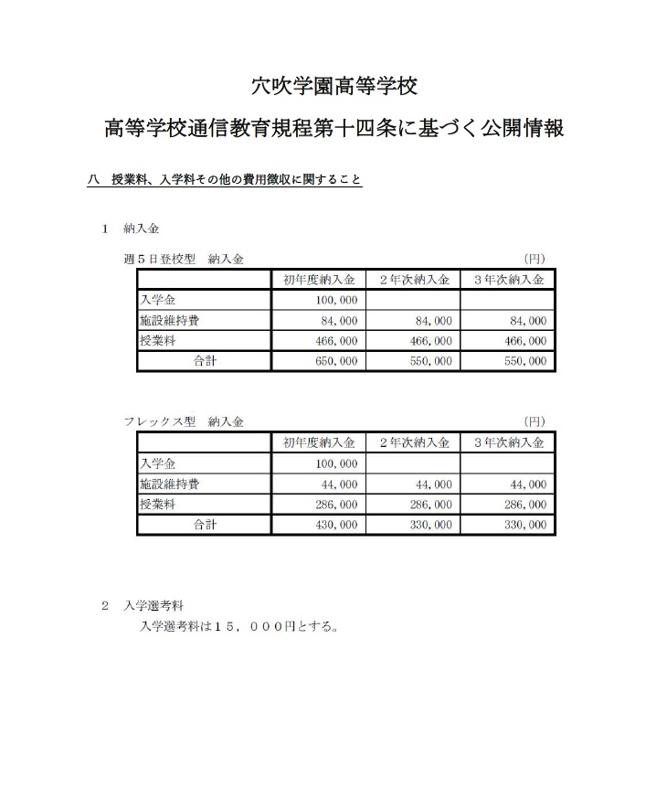 八 授業料、入学料その他の費用徴収に関すること