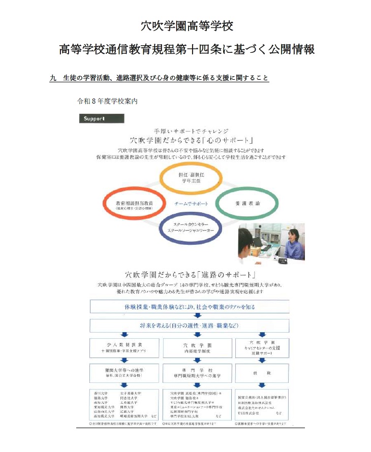 九 生徒の学習活動、進路選択及び心身の健康等に係る支援に関すること